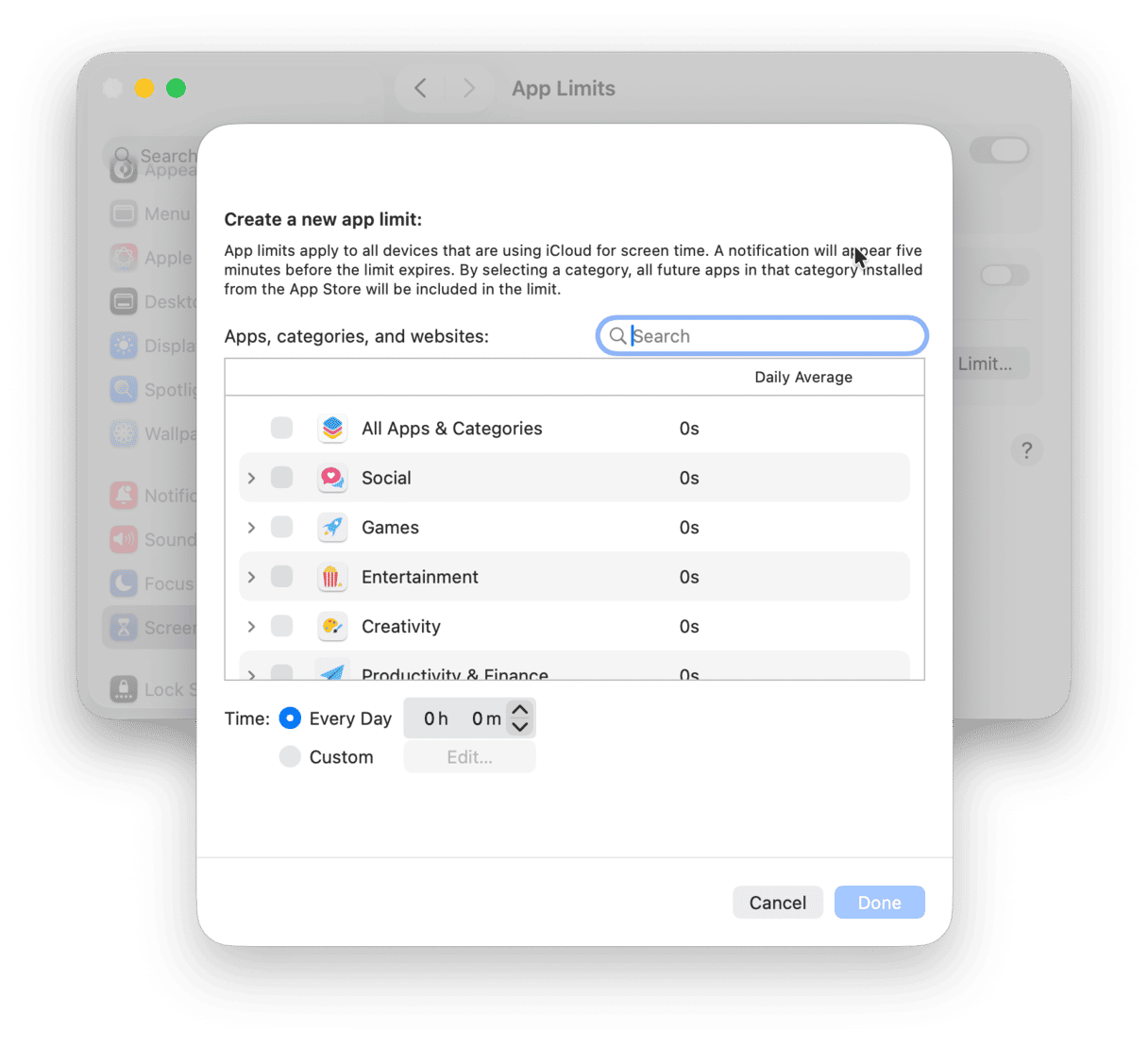 - From System Settings > Screen Time, go to App Limits.