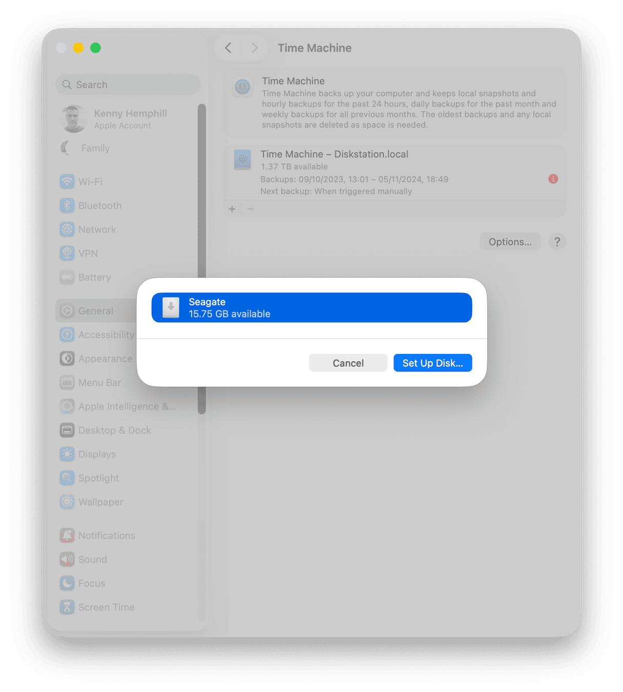 - Go to General > Time Machine.