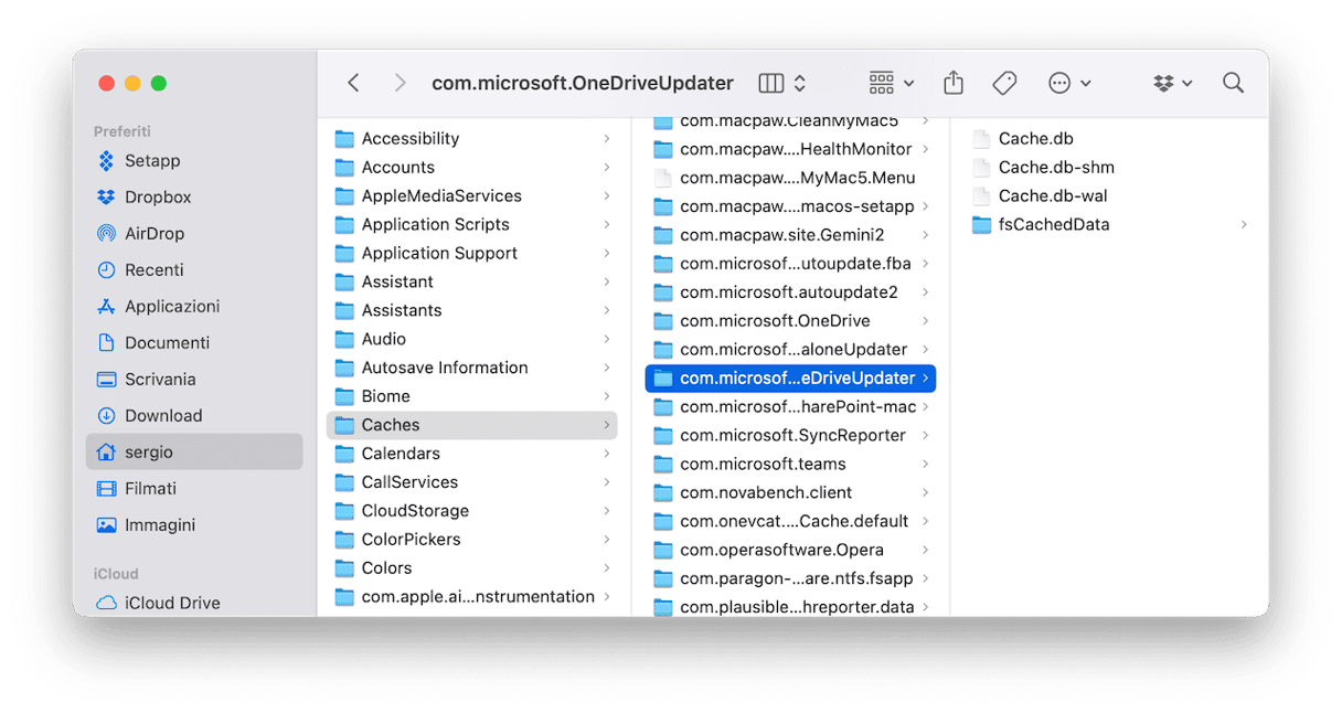 ~/Libreria/Caches - Cerca le cartelle che iniziano con "com.microsoft"