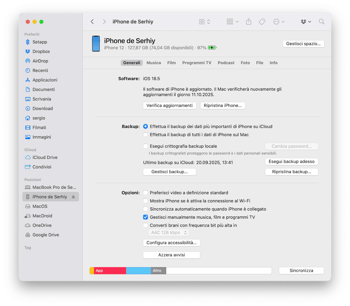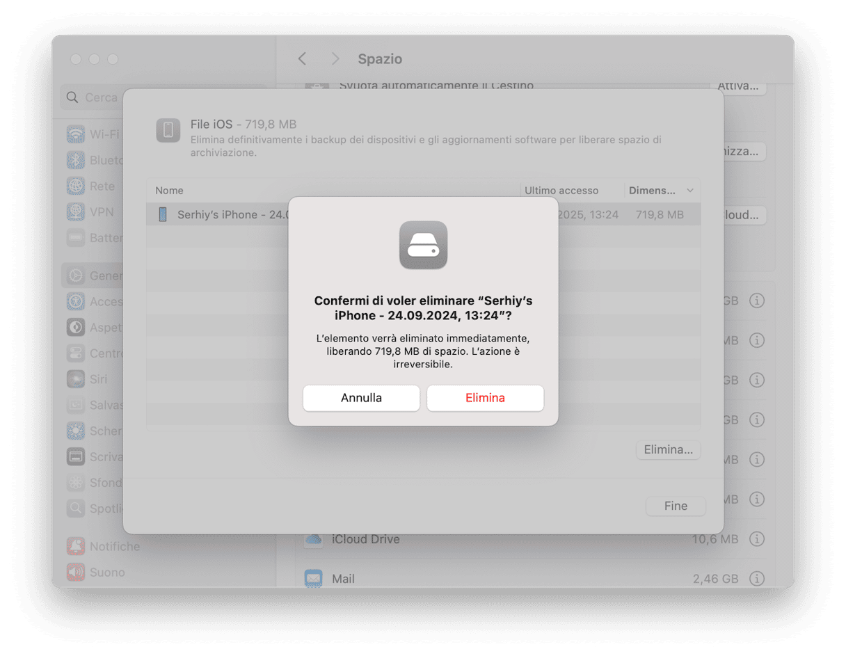 Il modo più sicuro e semplice per cancellare i File iOS dal Mac è quello di utilizzare le Impostazioni spazio di archiviazione di macOS.