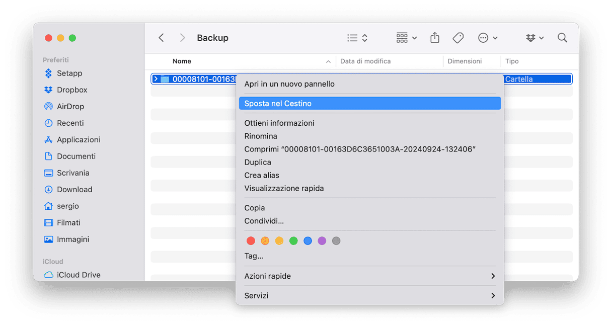 - Seleziona i backup che non ti servono e spostali nel Cestino.