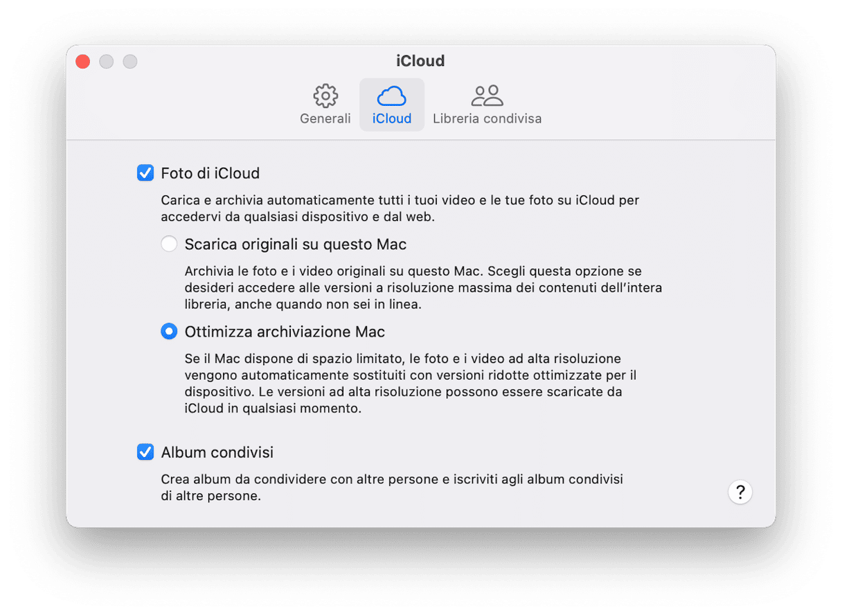 Se usi l'app Foto per custodire e gestire le fotografie, puoi ridurre lo spazio che occupano sul tuo Mac salvandone una versione locale a bassa risoluzione e conservando gli originali a formato pieno su iCloud. Così, quando vorrai modificare o condividere una foto, potrai sempre scaricare la versione originale.
