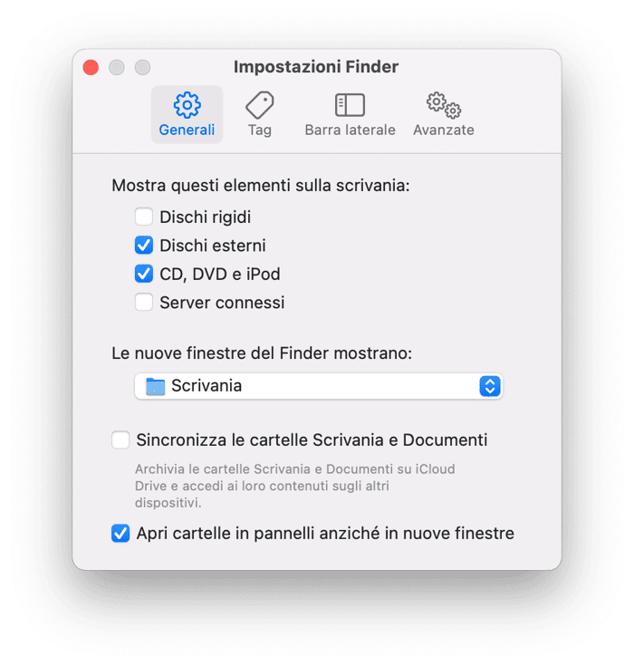 Controlla le impostazioni del Finder per personalizzare gli elementi da mostrare sulla Scrivania.