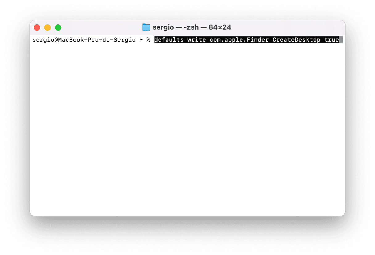 defaults write com.apple.Finder CreateDesktop true - Poi, inserisci il comando
