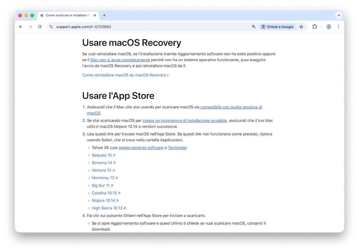 - Scorri in basso fino alla sezione "Scarica macOS" e cerca il link per macOS Sequoia.