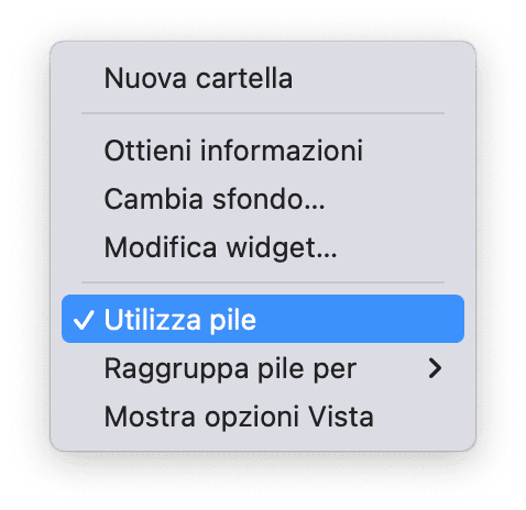 Un altro fattore determinante, che non permette al Mac di funzionare al massimo delle sue potenzialità, è il disordine sulla Scrivania. La Scrivania archivia i file come piccole anteprime e utilizza potenza del processore per generarle. Se hai proprio bisogno di accedere ai file dalla Scrivania, prova a usare le pile: