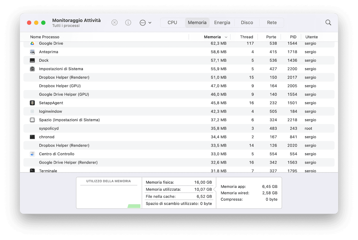 - Fai clic su Memoria nella barra di navigazione.