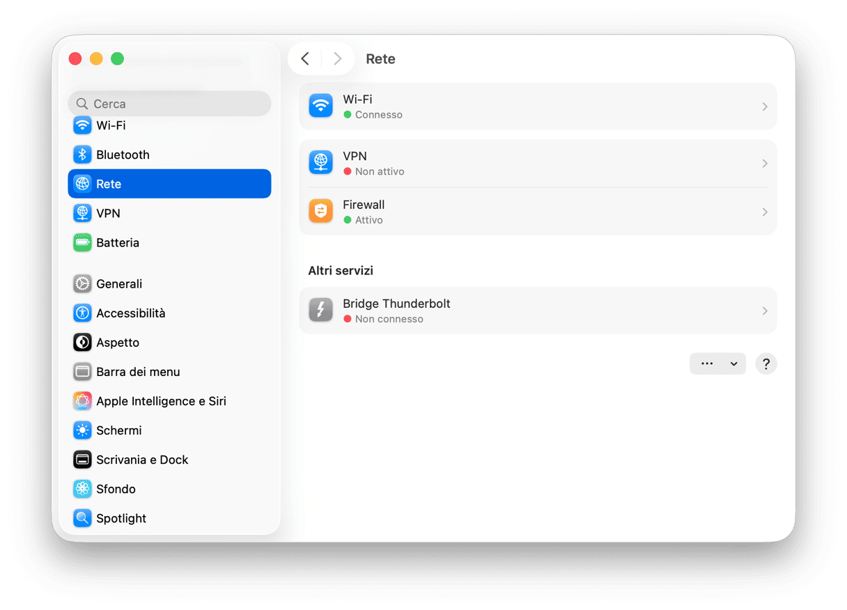 Assicurati che la connessione Wi-Fi e la connessione di rete funzionino bene utilizzando un browser web sul Mac oppure un altro dispositivo per navigare online. Prova a spegnere il Wi-Fi e poi a riaccenderlo dalla barra dei menu oppure da Impostazioni di Sistema > Wi-Fi.