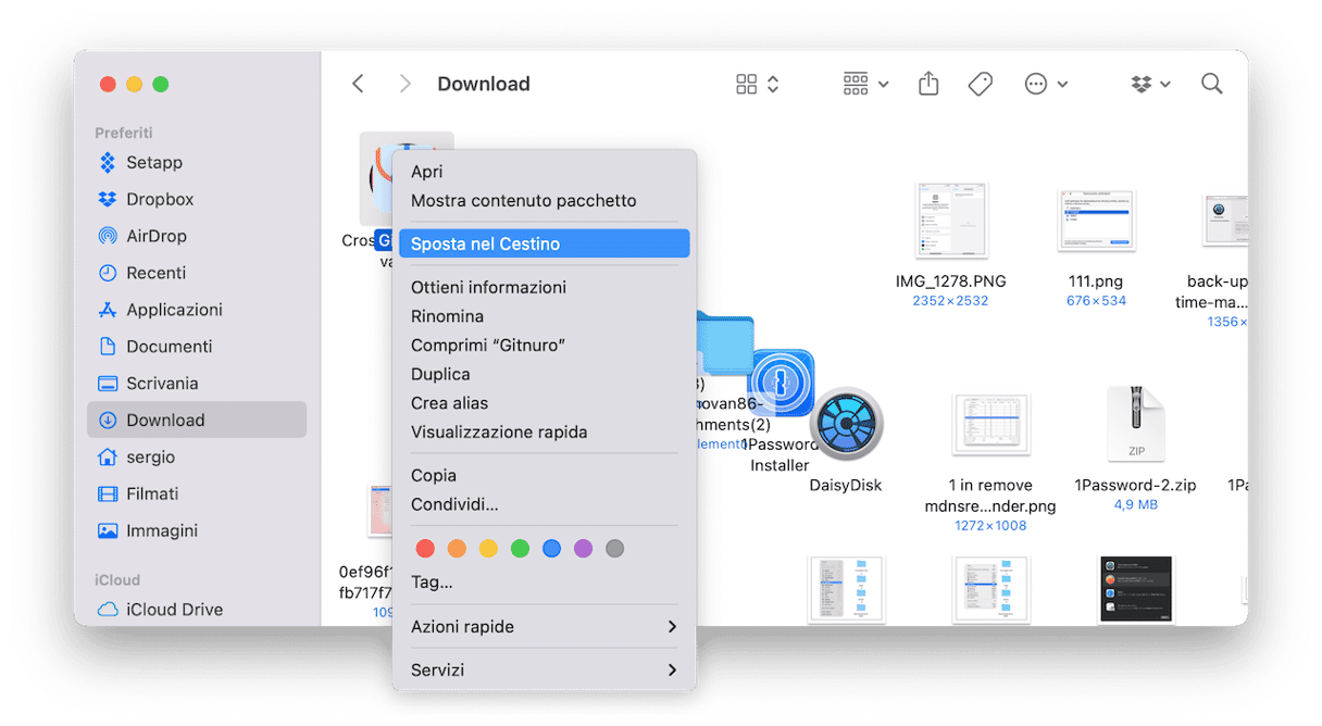 Ormai hai deciso, è arrivato il momento di pulire il Mac. Ma da dove iniziare? Non c'è luogo migliore della cartella Download. Non facciamo altro che scaricare sui nostri computer un'infinità di dati che (diciamocelo) la metà delle volte sono del tutto inutili! Perciò, la prima cosa da fare è gettare nel Cestino tutti i file che non servono. Ecco come fare: