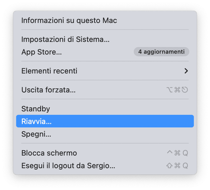 Riavviare il Mac consente di cancellare i file temporanei e, nei Mac più recenti, anche di eseguire dei controlli sul disco di avvio. È un buon metodo per affrontare i problemi di cui non conosci l'origine e molto spesso funziona.
