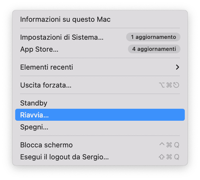 Se Teams ancora non funziona, prova a riavviare il Mac. Il riavvio permette di pulire la RAM, eliminare i file temporanei e, speriamo, risolvere il problema. Vai nel menu principale Apple e seleziona Riavvia.
