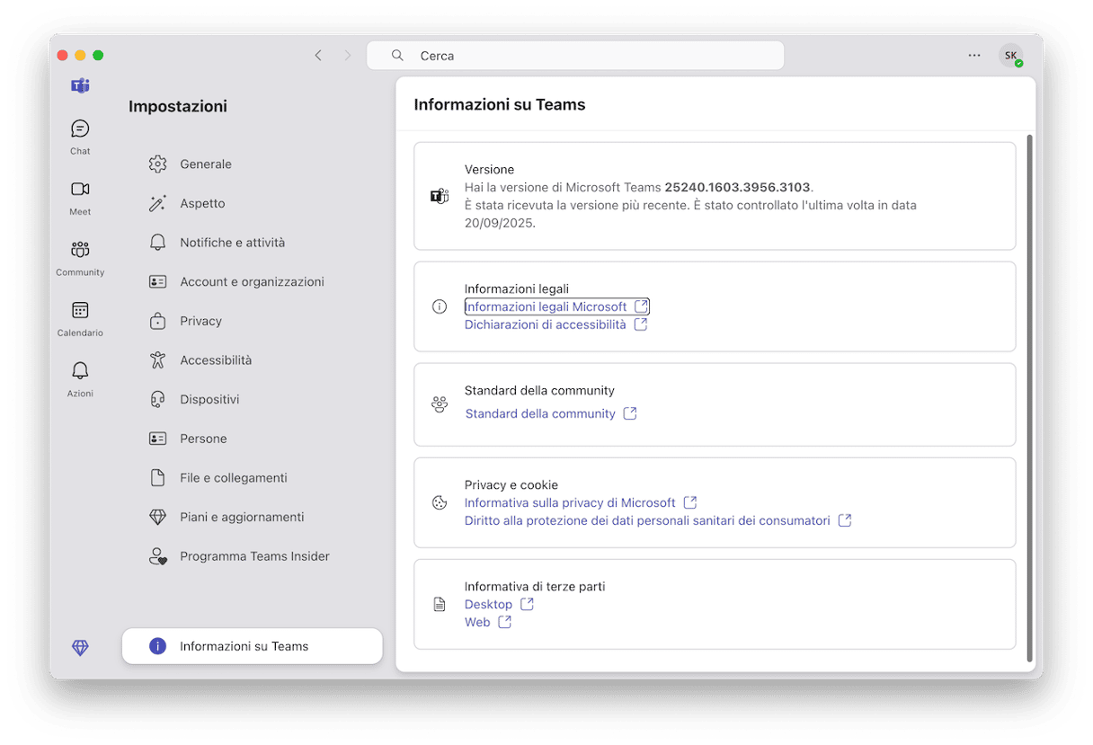 3. Controlla gli aggiornamenti di Teams e di macOS