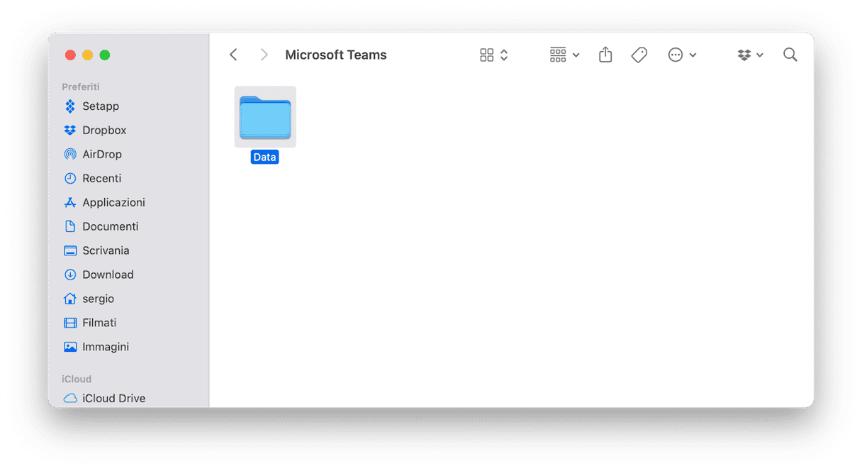 ~/Libreria/Containers/com.microsoft.teams2 - In questo caso, sposta nel Cestino la cartella Data.