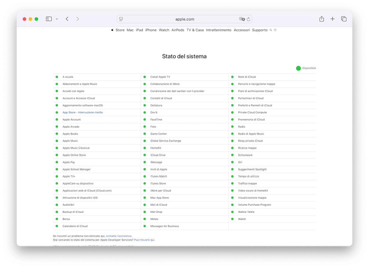 4. Controlla la pagina Stato del sistema di Apple