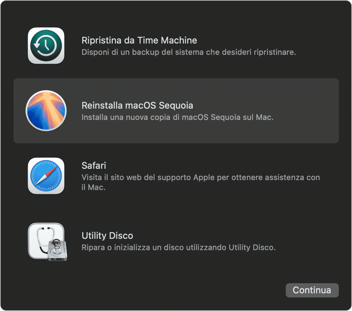 In Recupero di macOS, clicca Reinstalla macOS.