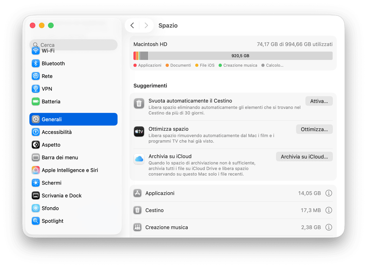 - Vai al menu Apple > Impostazioni di Sistema > Generali > Spazio.