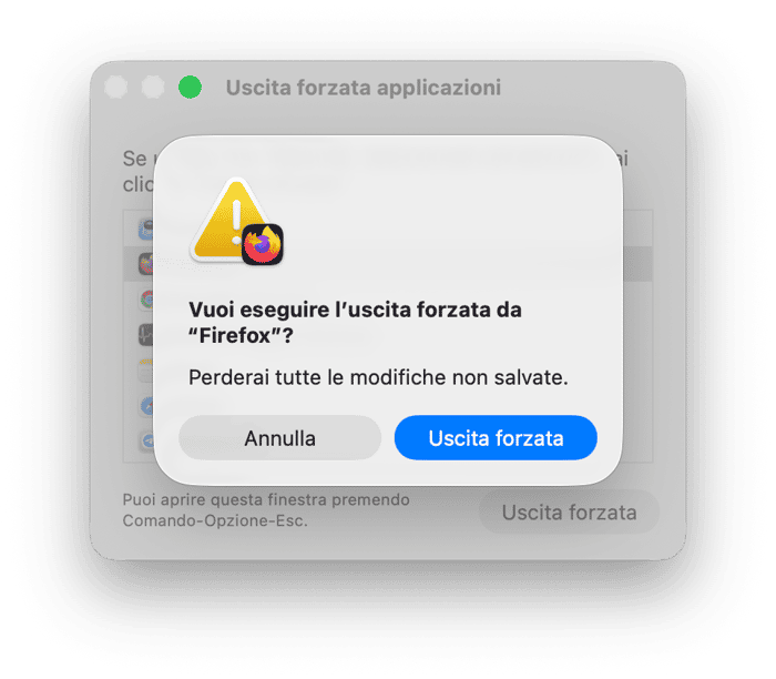 - Premi Comando + Opzioni + Esc sulla tastiera.