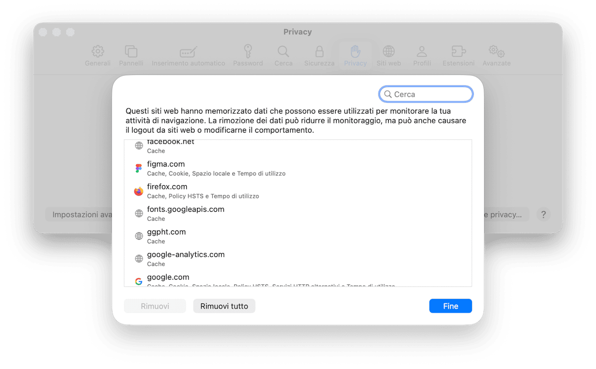- Fai clic su Safari > Impostazioni > Privacy.