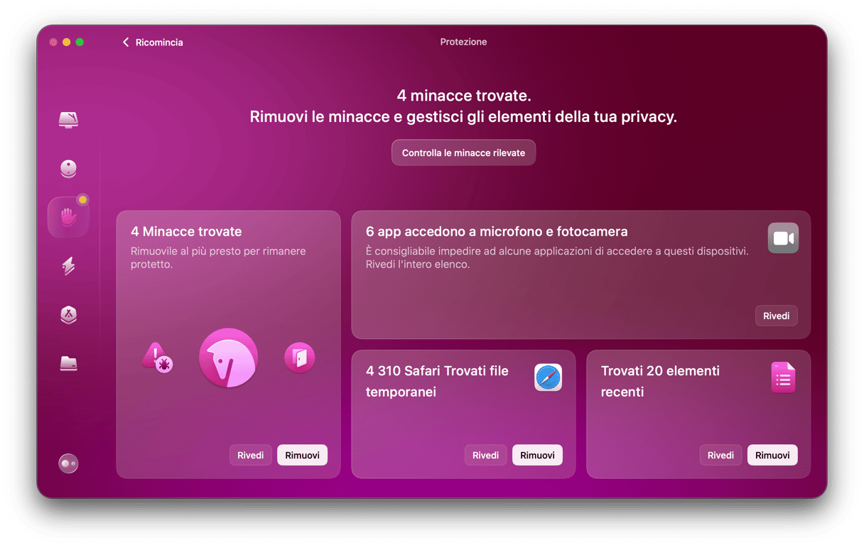 Quel che più ci piace di CleanMyMac è che può scansionare il computer in background e ti informa immediatamente quando trova qualcosa di dannoso.