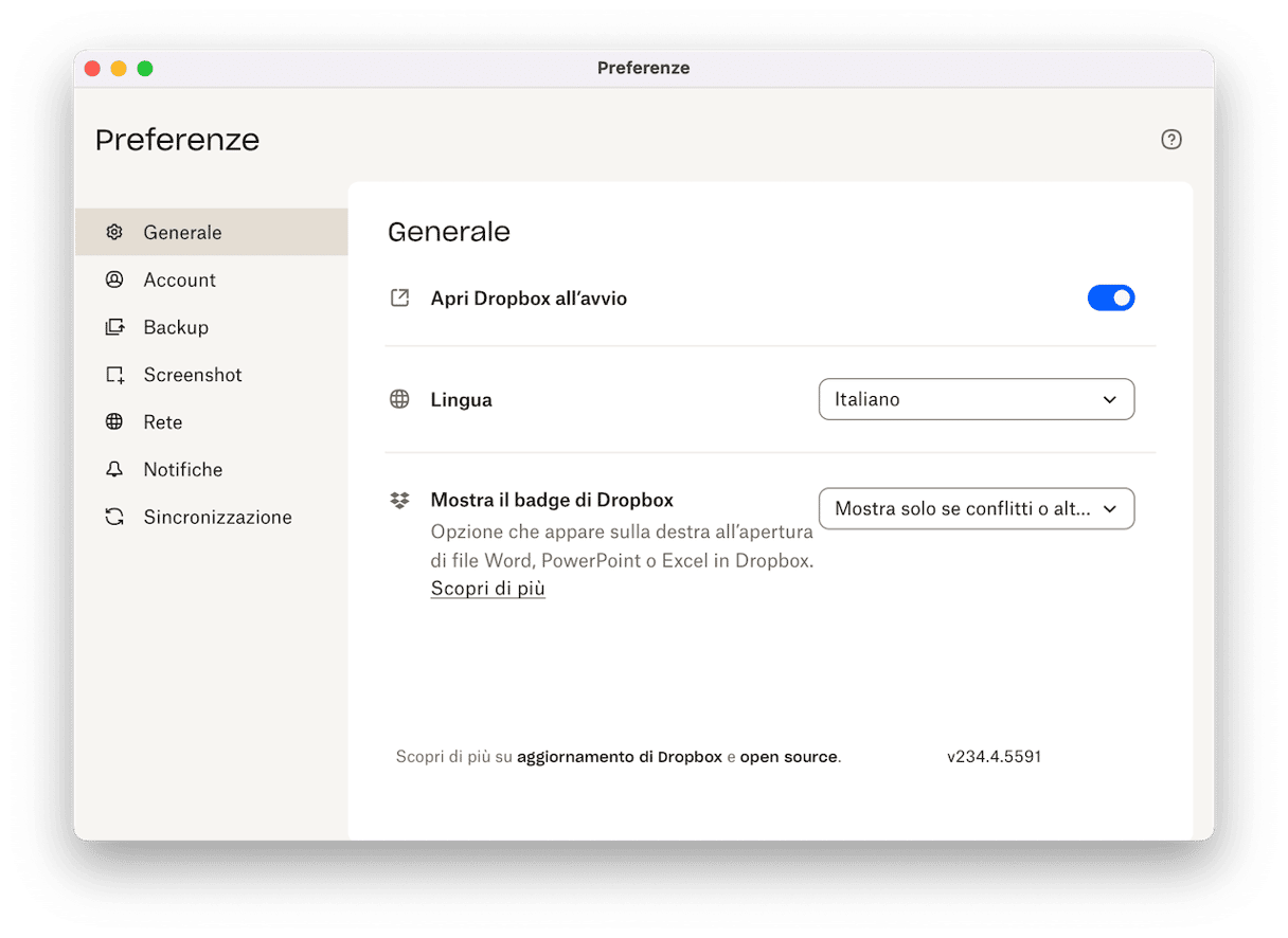 - Togli la spunta da "Apri Dropbox all'avvio".