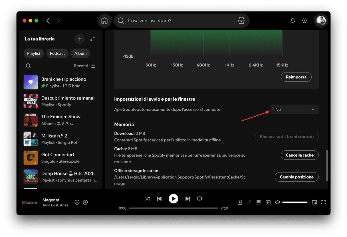 Altre app rendono ancora più difficile impedire loro di aprirsi all'avvio. Ma è comunque possibile bloccarle, ecco un esempio con Spotify: