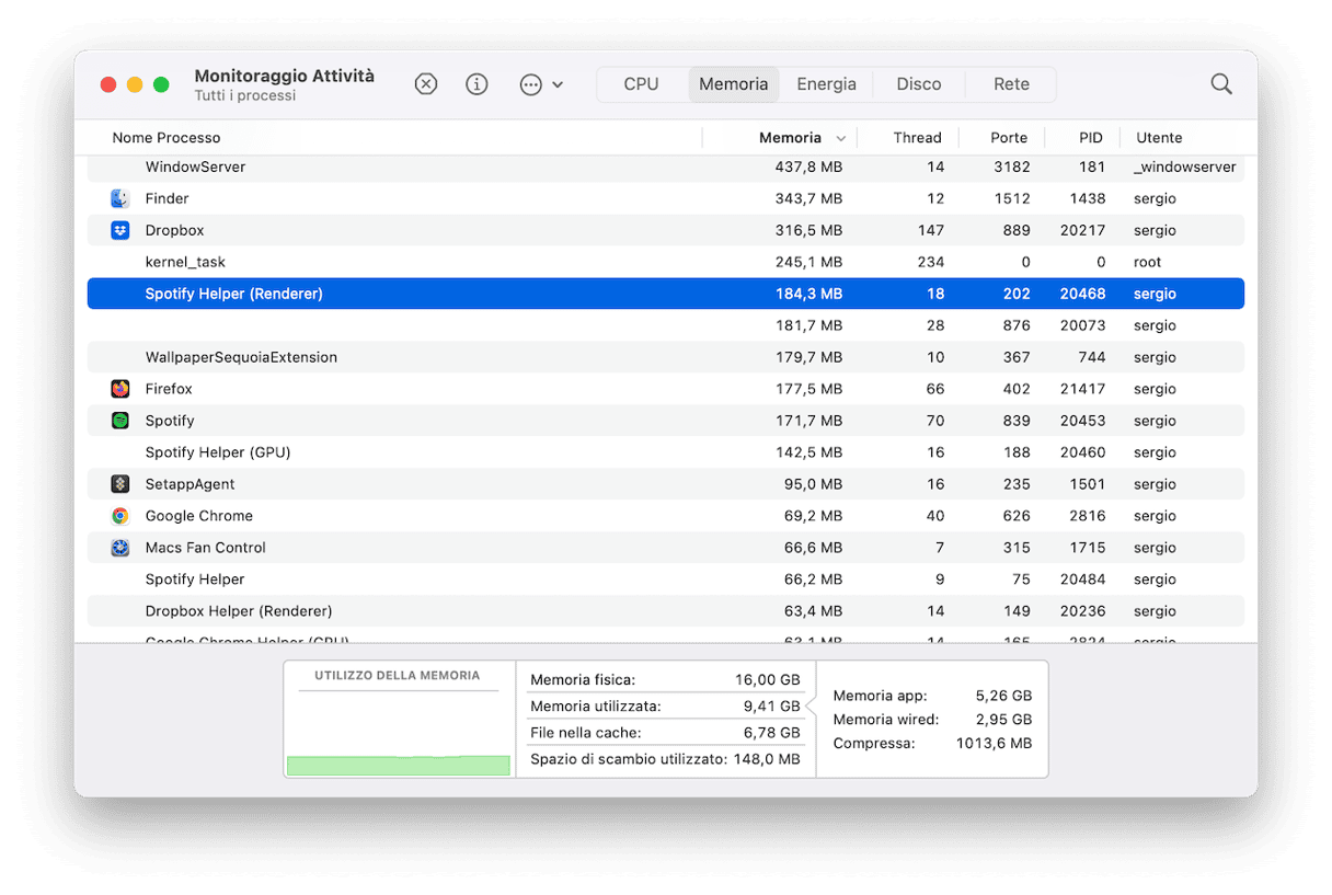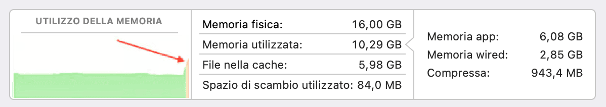 Fai attenzione quando il grafico Utilizzo della memoria diventa rosso.