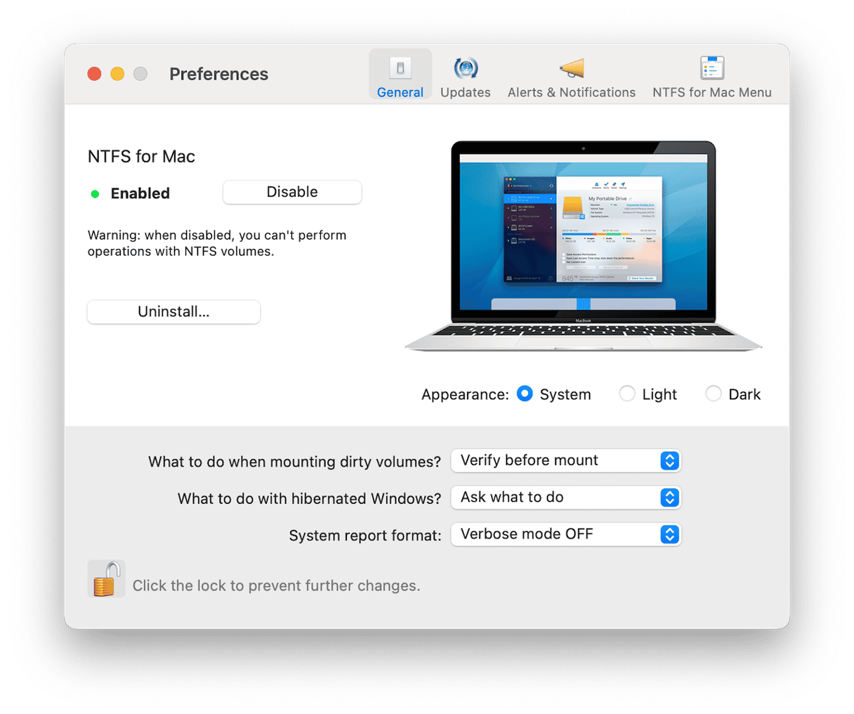 - Seleziona NTFS for Mac e fai clic su Disinstallazione.