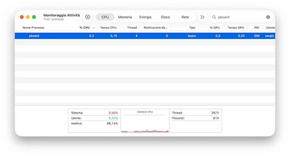 Se "copia e incolla" non funziona sul Mac, Monitoraggio Attività può aiutarti: