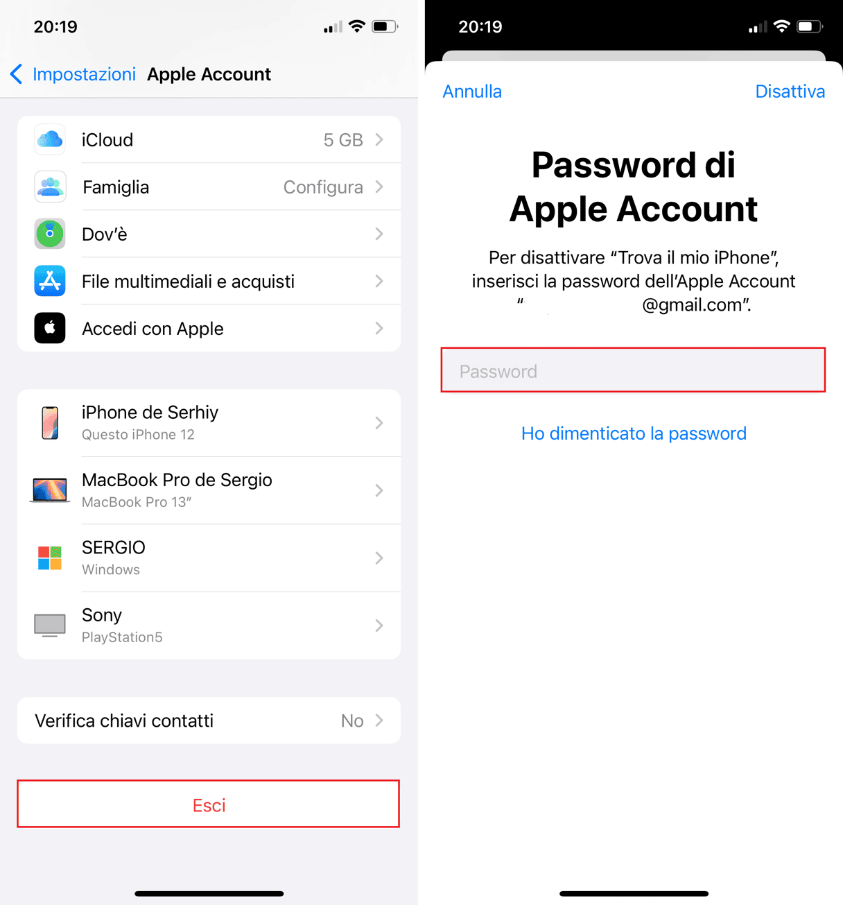 - Inserisci il tuo ID Apple e la password e tocca Disattiva.