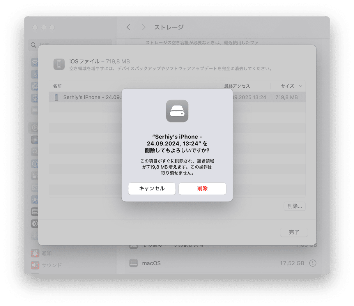 iOSファイルをMacから削除する方法