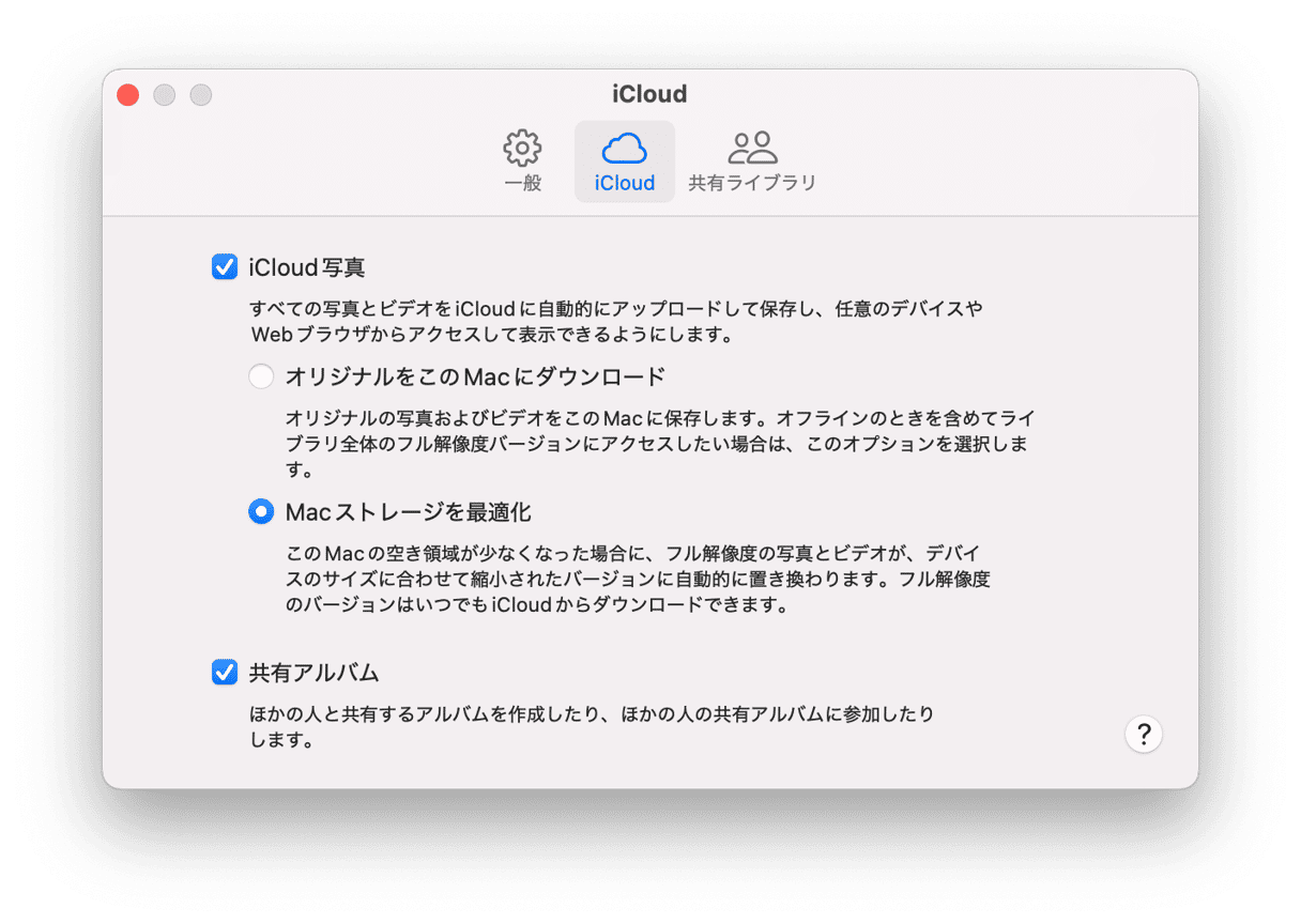これで、写真アプリを開くたびに、そのライブラリが開いてiCloudと同期されるようになります。 ただし、これで写真はMacに保存されなくなります。