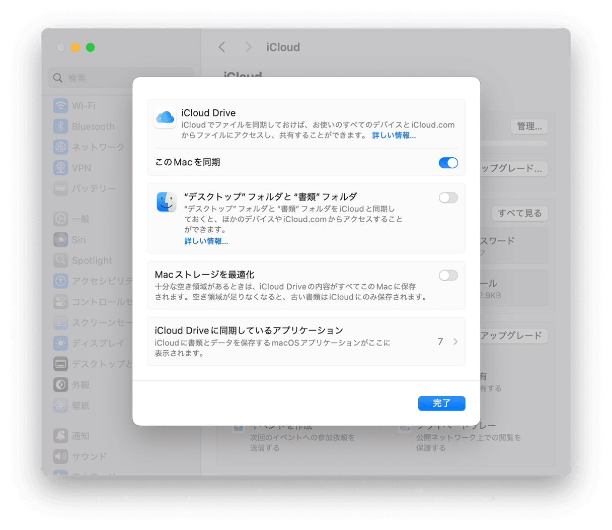 - 「iCloudに保存」をクリックし、保存したい項目を選択します。