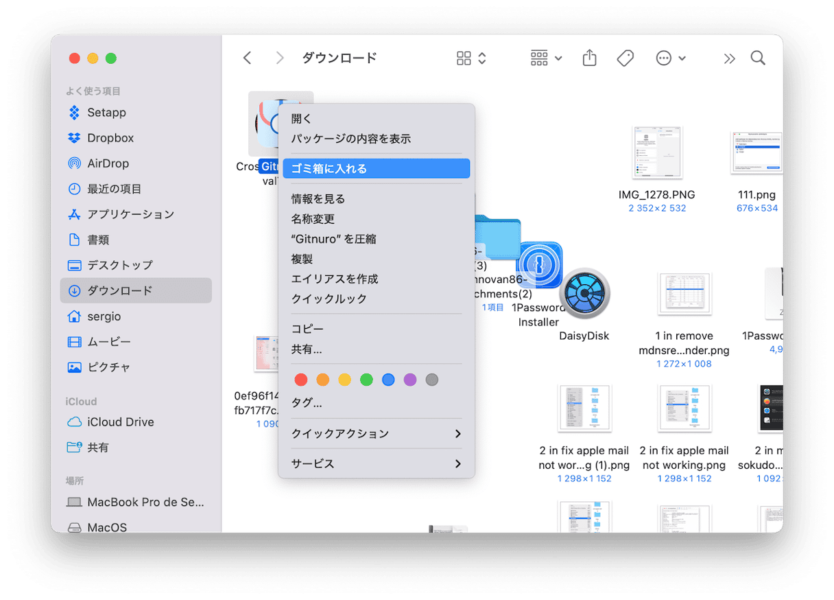 Macを掃除すると決めた時、まず見るべきなのは、ダウンロードフォルダです。 ユーザーは、コンピュータに膨大な量のデータをダウンロードしていることが多いです。 正直に言うと、そのファイルの半分は実際必要ないものです! 無駄なファイルをゴミ箱に捨てて、整理整頓しましょう。 その方法はこちらです: