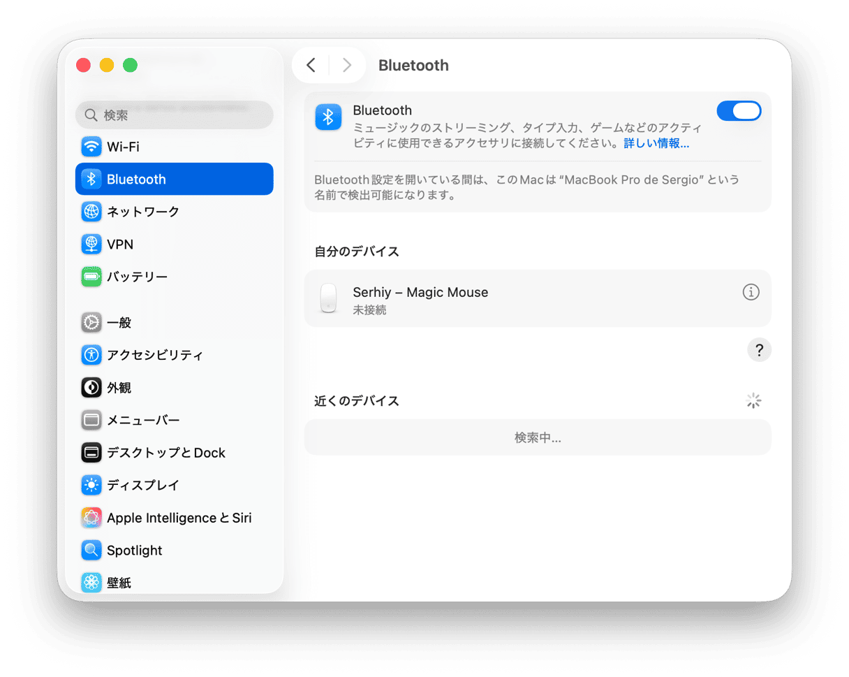 まさにテンプレのような作業ですが、実際に効果があるものです。 したがって、次のステップとして、Bluetoothマウスをオフにしてから再びオンにしてみます。 それでも問題が解決しない場合は、メニューバーにBluetoothアイコンがあればそこから、もしくはコントロールセンターからMacのBluetoothを一度オフにして再びオンにします。