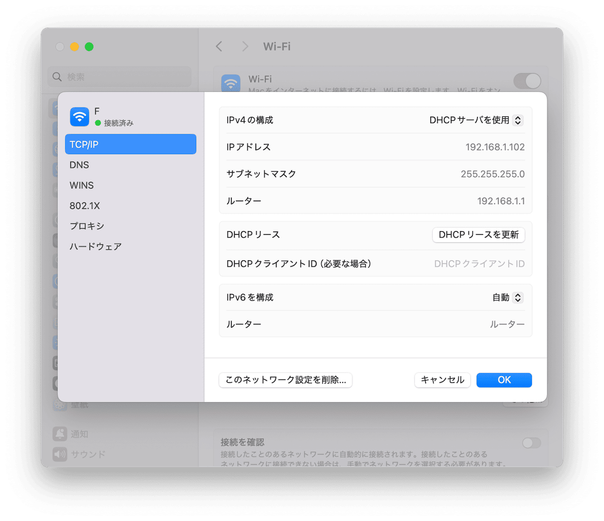 - 「DHCPリースを更新」をクリックします。