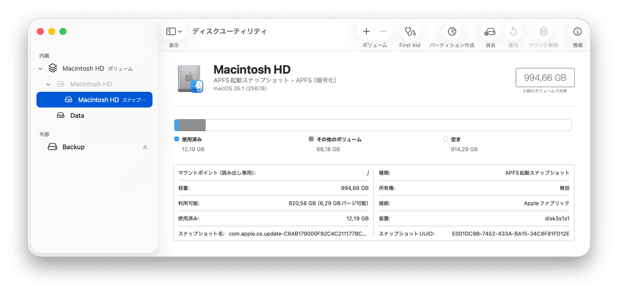 ファイルの破損や、アプリが勝手に終了する、もしくは外部デバイスが正常に動作しないなどの問題が発生した場合は、ディスクユーティリティを実行して起動ディスクを修復できます。