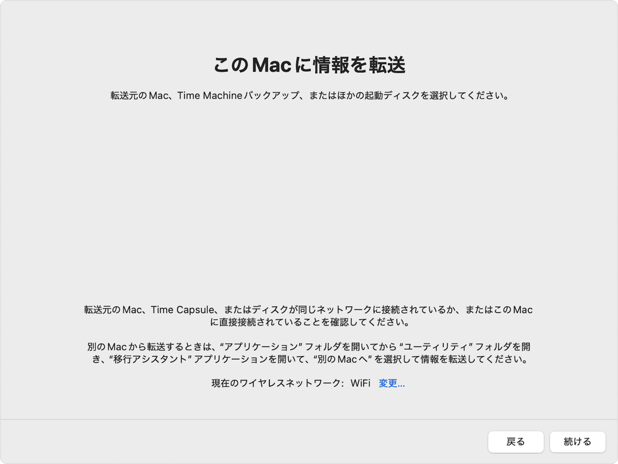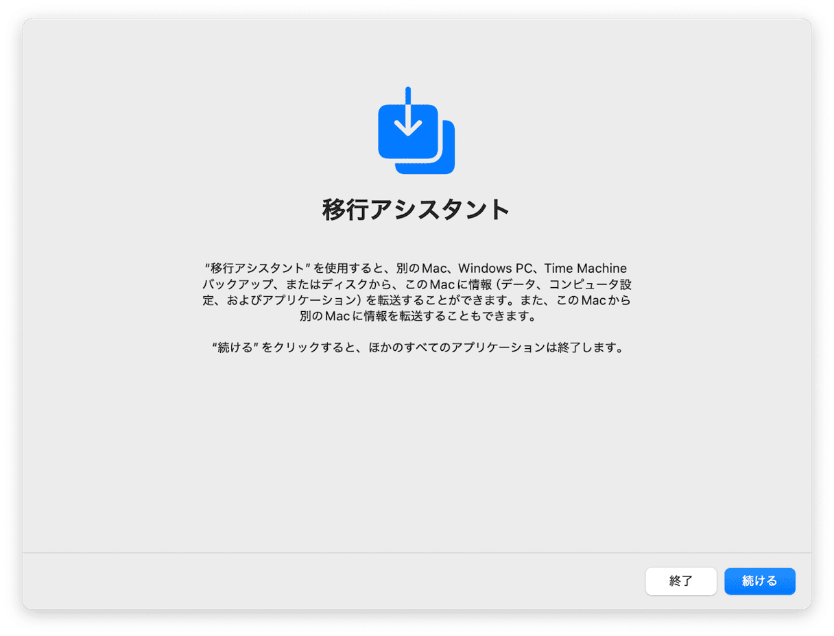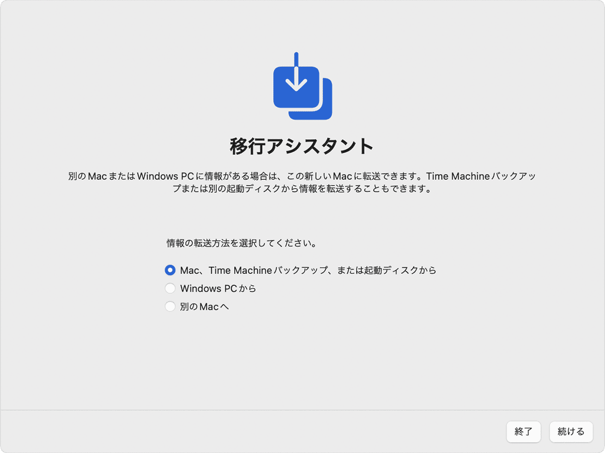 新しいMacで移行アシスタントを設定: