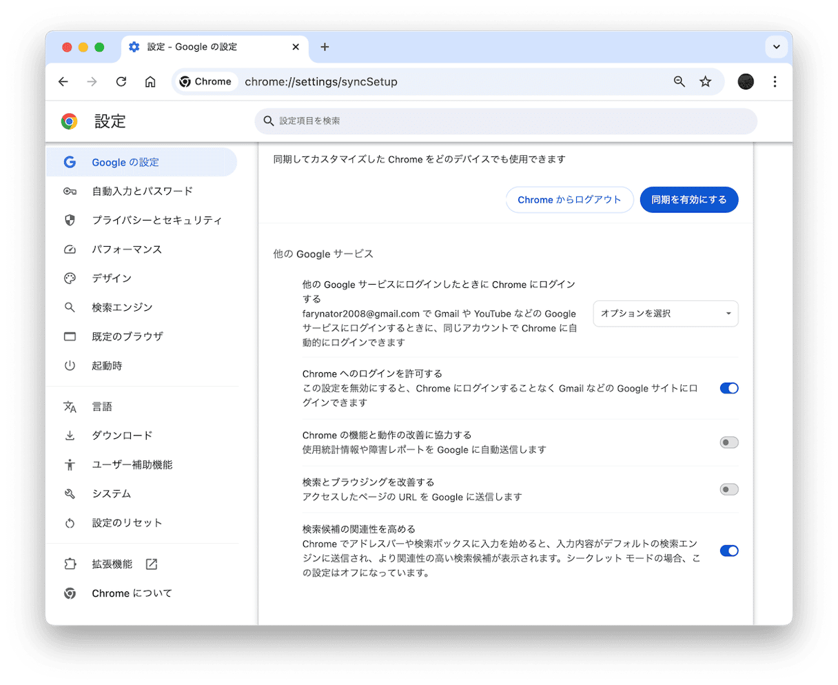 - こちらに移動します:chrome://settings/