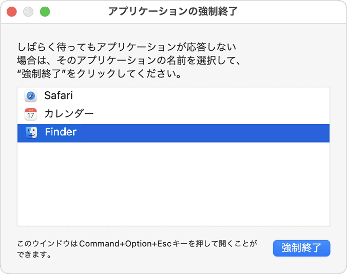- 「強制終了」を選択します。(または、Command + Alt + Esc)