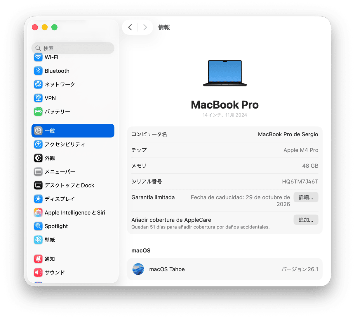 Macの「システム設定」>「一般」>「情報」から、現在搭載されているメモリの容量を確認することができます。