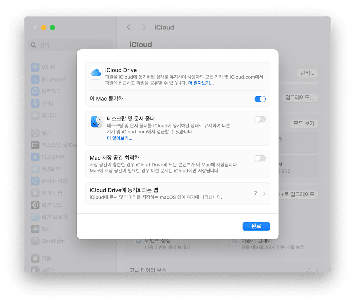 - iCloud에 저장을 클릭하고 보관할 항목을 선택합니다.
