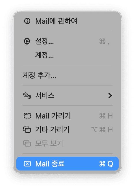 Mail을 종료하고 다시 열어보세요. 이렇게 하면 임시 파일이 삭제되고 캐시가 지워져요. 이 방법으로 바로 문제가 해결될 수도 있어요.