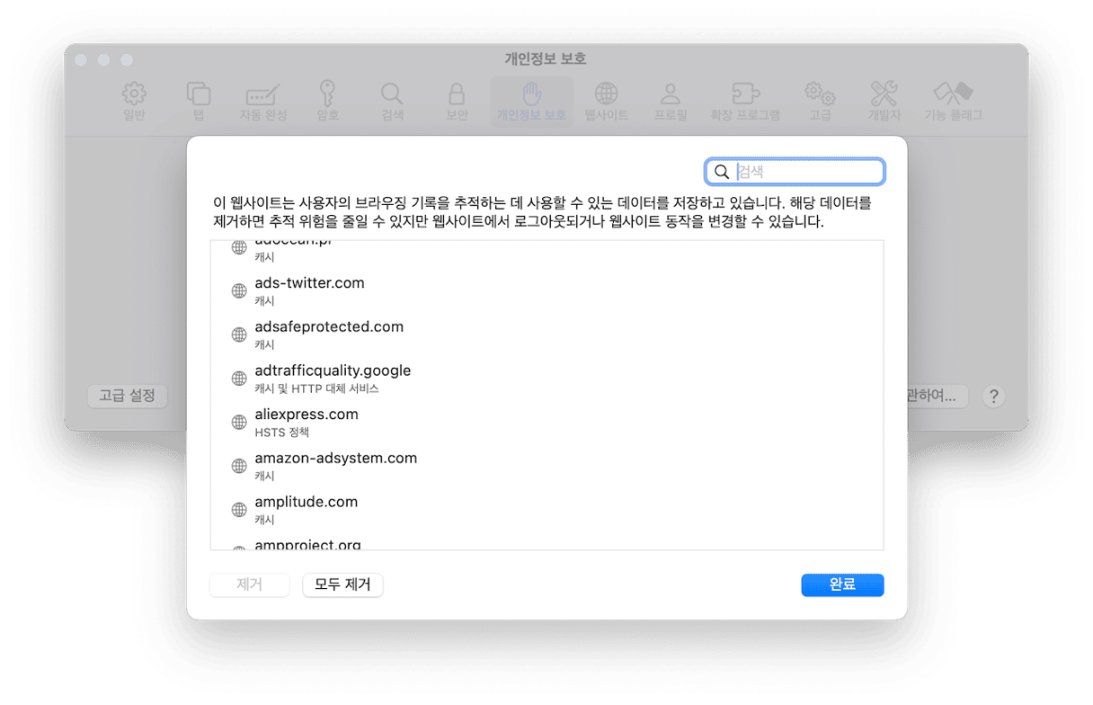 간혹 브라우저 캐시 파일이 충돌을 일으켜 파일을 다운로드하지 못하는 경우가 있습니다. 캐시를 지우는 방법은 브라우저마다 조금씩 다릅니다. 일반적으로 이 옵션은 브라우저 설정의 보안 및 개인정보 보호 섹션에서 찾을 수 있습니다. Safari의 경우, Safari > 설정 > 개인정보 보호에 있습니다. 그런 다음 '웹사이트 데이터 관리' 버튼을 클릭하고 데이터가 로드되면 '모두 제거'를 클릭합니다. Chrome의 경우 주소창 오른쪽에 있는 점 세 개 모양의 버튼을 클릭하고 설정 > 개인 정보 보호 및 보안 > 인터넷 아용 기록 삭제를 선택합니다. Firefox는 주소창 오른쪽에 있는 세 줄 모양의 버튼을 클릭하고 설정 > 개인 정보 및 보안을 선택한 다음 쿠키 및 사이트 데이터 섹션에서 아래로 스크롤하여 '데이터 지우기'를 클릭합니다. 브라우저 확장 프로그램이 설치되어 있다면 해당 확장 프로그램을 비활성화하여 문제가 해결되는지 확인하는 것도 좋습니다.