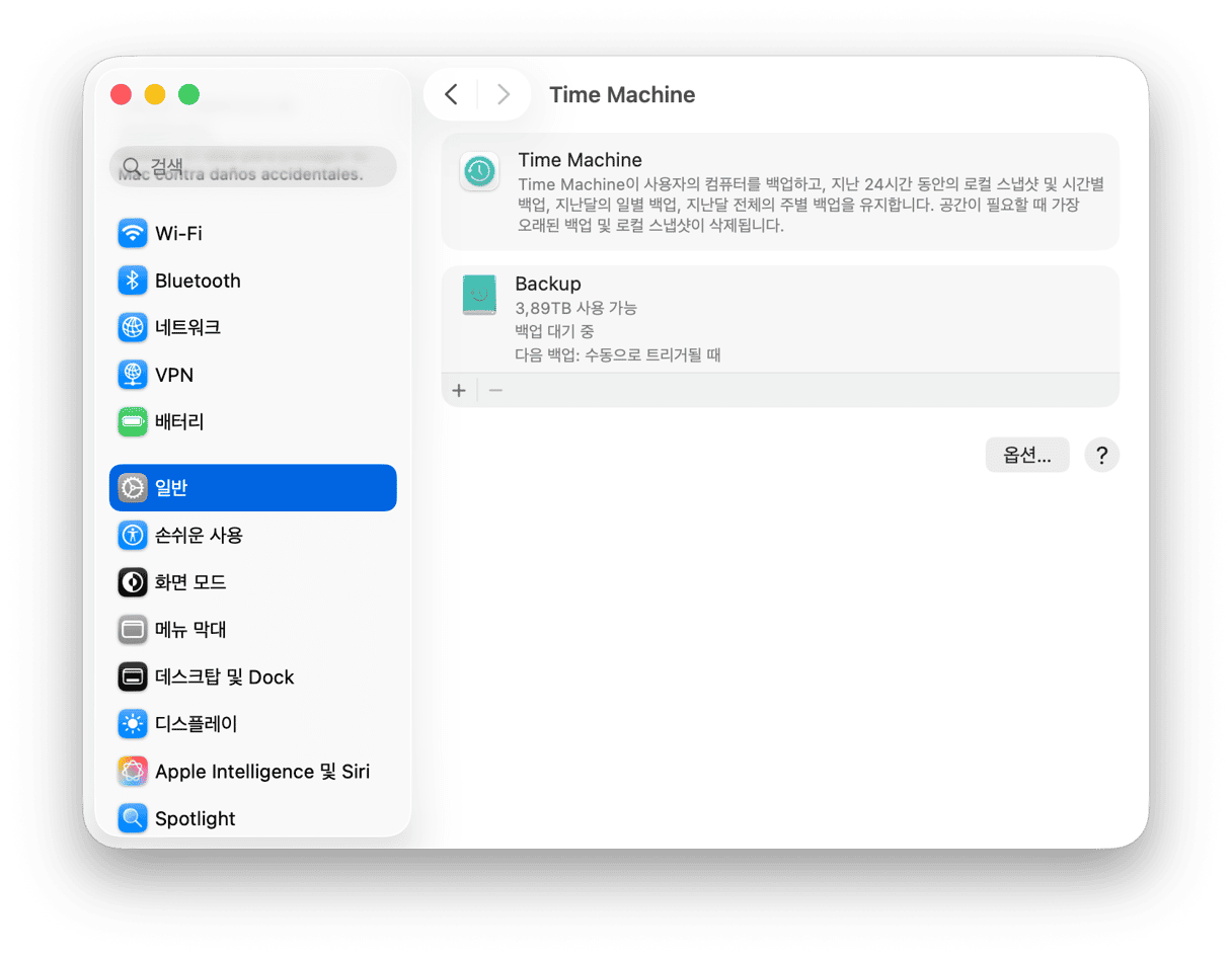 - 시스템 설정 > 일반 > Time Machine으로 이동합니다.