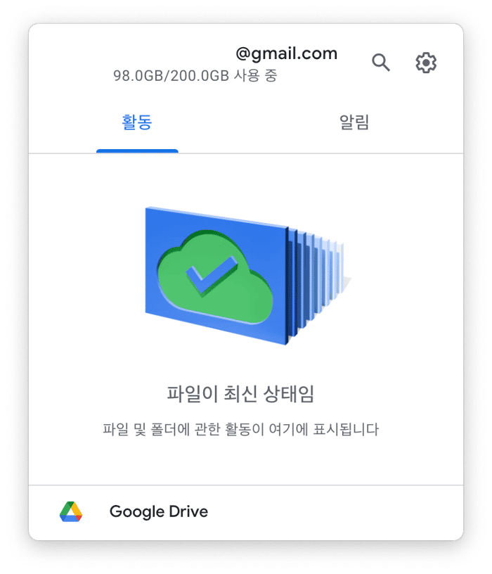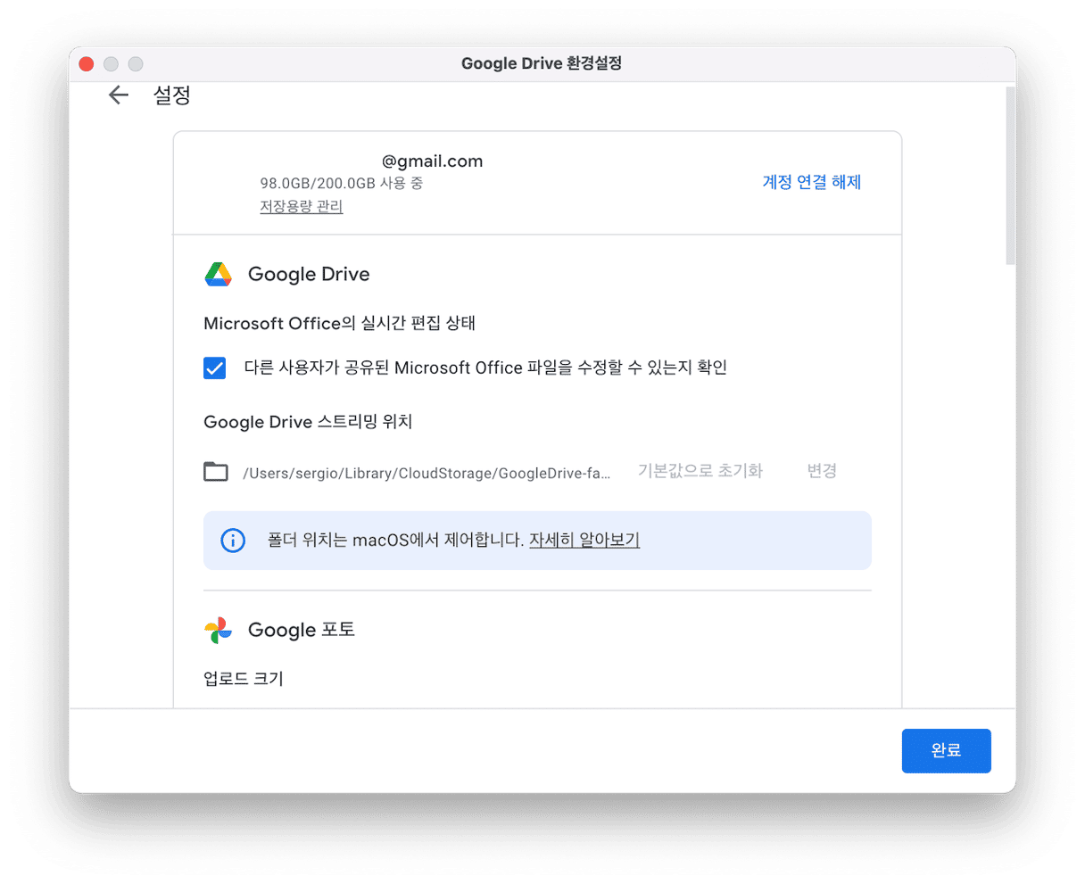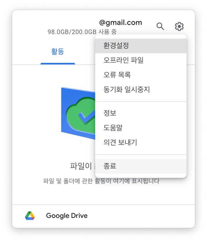 - 다시 Google 드라이브 아이콘 > 설정으로 이동합니다.
