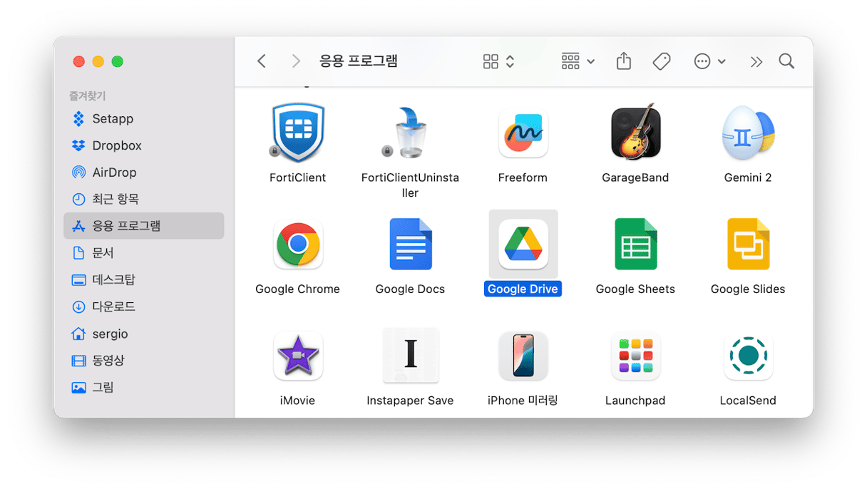 - 응용 프로그램 폴더로 이동하여 Google 드라이브 앱을 찾습니다.