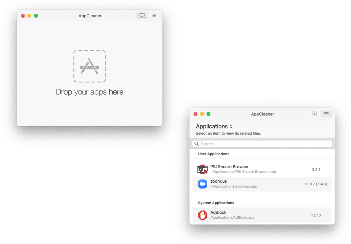 앱을 완전히 삭제해주는 작고 무료인 앱이 필요하다면 'AppCleaner'를 가장 추천합니다. 커뮤니티에서 많은 사용자들로부터 사랑을 받고 있는 앱입니다. Mac에 설치된 모든 앱과 애드온, 위젯을 한꺼번에 살펴볼 수 있죠. 또는 목록에서 앱을 찾는 대신에 응용 프로그램 폴더에서 특정 앱을 바로 끌어놓아 삭제하는 것도 가능합니다.
