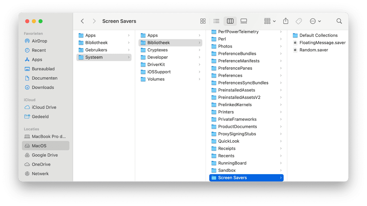 /Systeem/Bibliotheek/Screen Savers/en klik op 'Ga'.