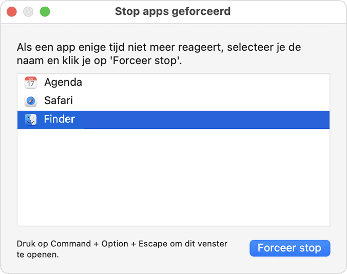 - Druk Option-Command-Escape in om het menu 'Forceer stop' te openen.