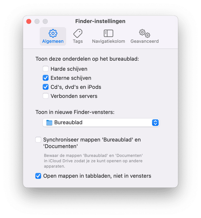 Bekijk je Finder-instellingen om aan te passen welke onderdelen op je bureaublad verschijnen.